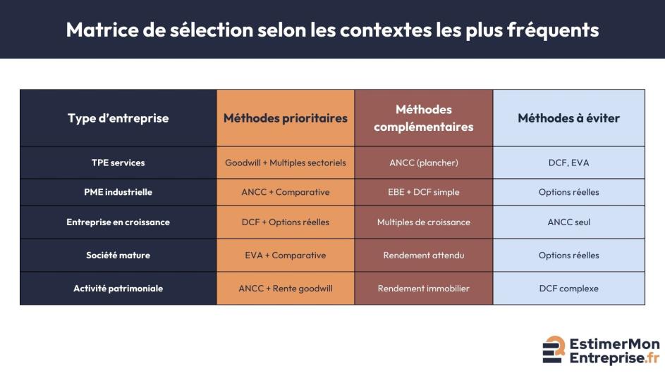 En pratique, le choix des méthodes dépend des caractéristiques de l'entreprise et de l'objectif de l'estimation.